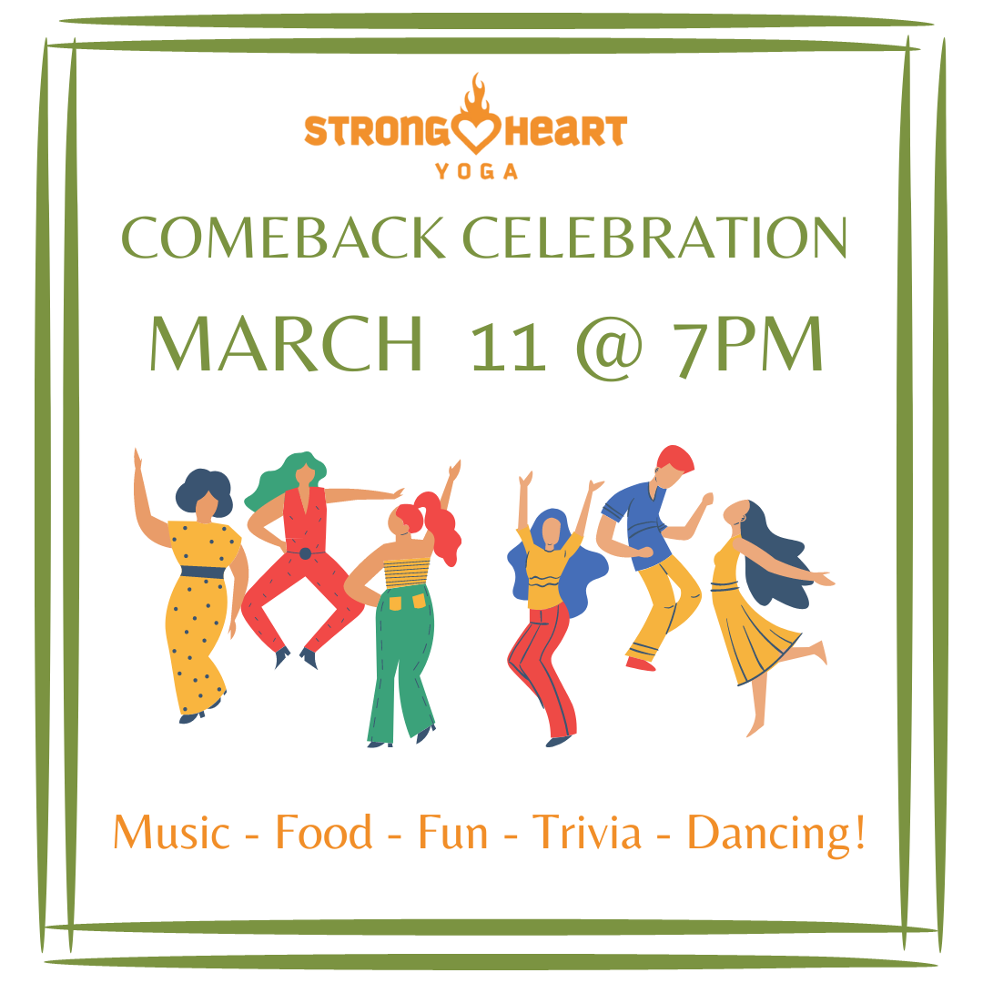 We’re going to dance—did you know yoga dance is a real thing; play some trivia—no worries, all the questions won’t be in Sanskrit; have some food and drinks— and just genuinely enjoy our friends and our space!